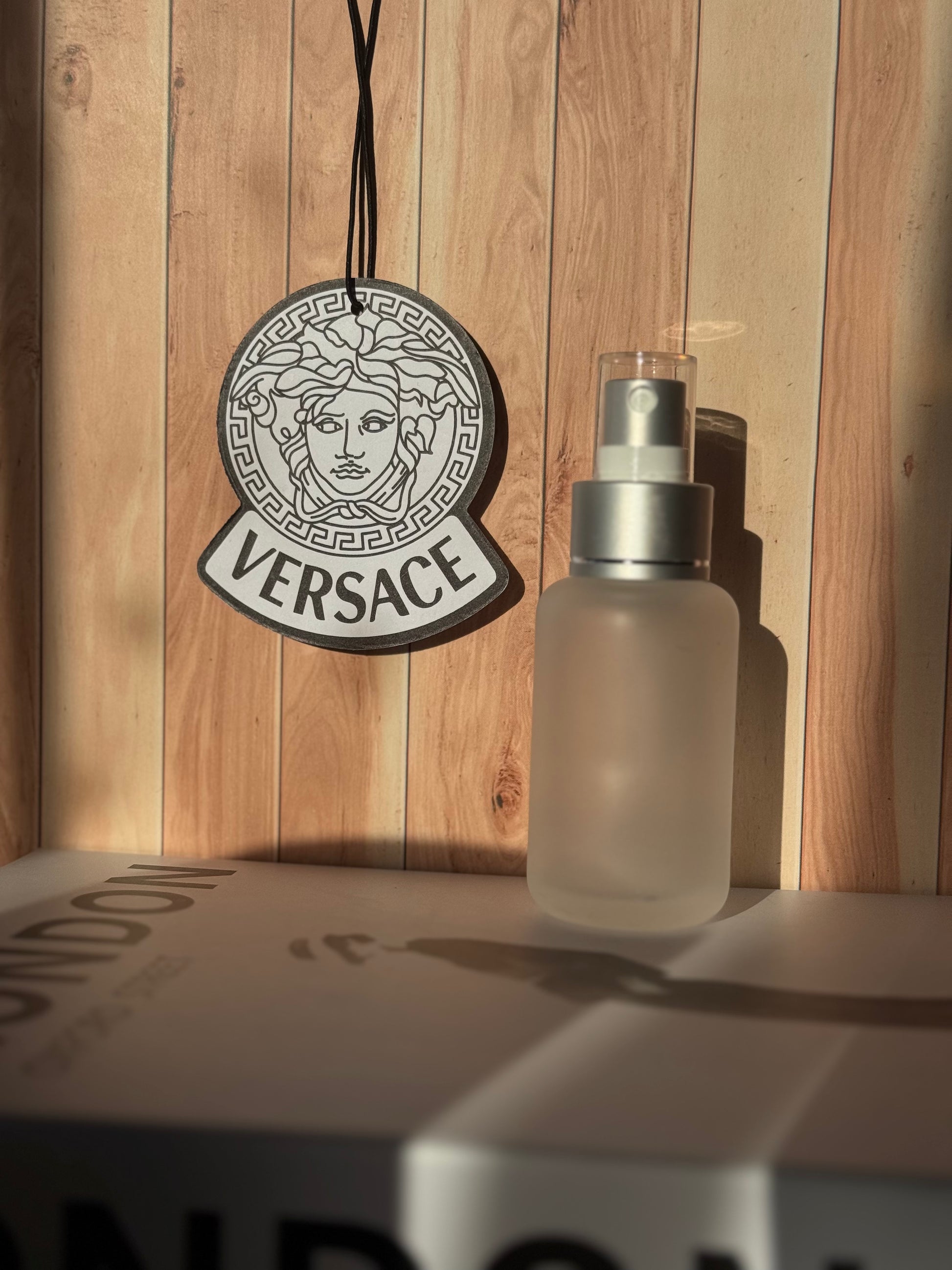 The Cruise Couture bundle pairs one of our signature car spray with a hanging air freshener—designed to elevate your ride with long-lasting fragrance and understated luxury.